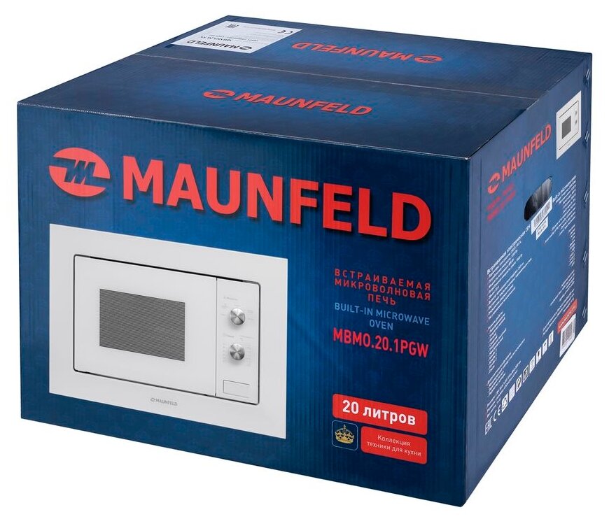 Микроволновая печь MAUNFELD MBMO.20.1PGW, встраиваемая, 20л, 800Вт, белый [ка-00013588]