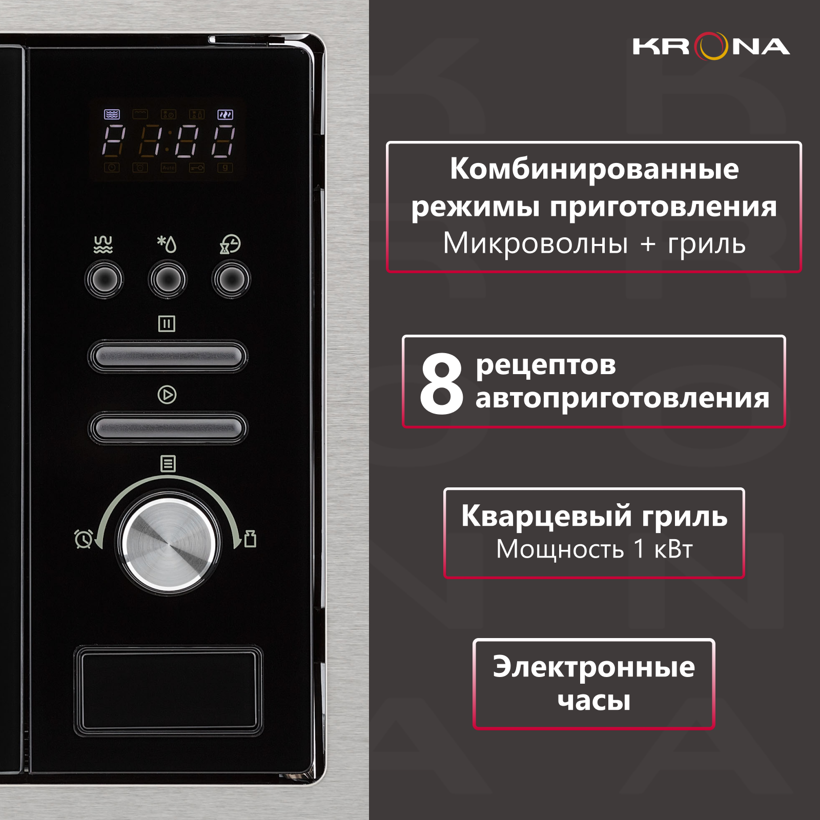 Микроволновая печь встраиваемая Krona ARGENTO 60 IX, нержавеющая сталь/черный