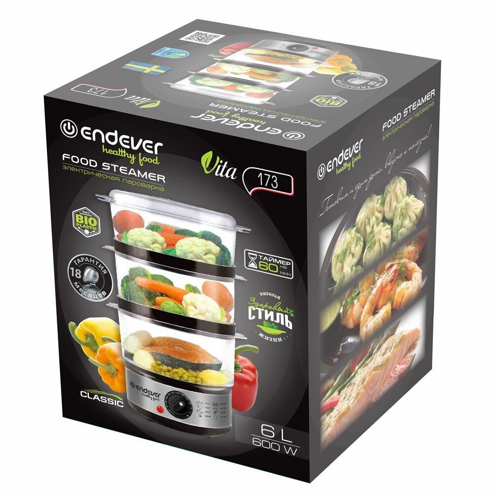 Пароварка электрическая Endever Vita-173, черный/стальной, 600 Вт, 6л (90034)