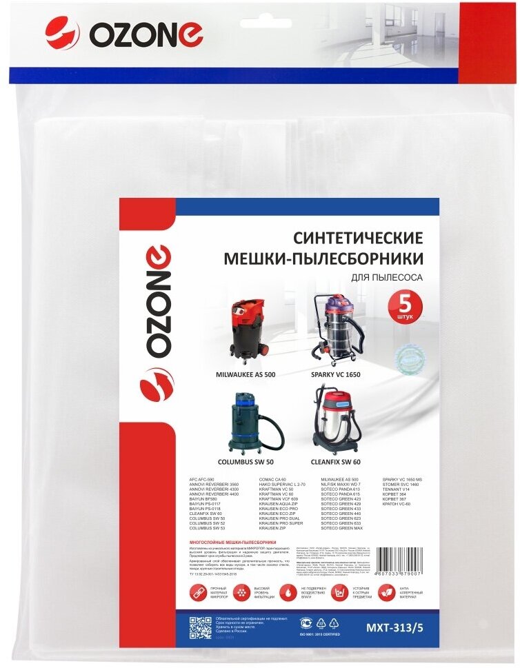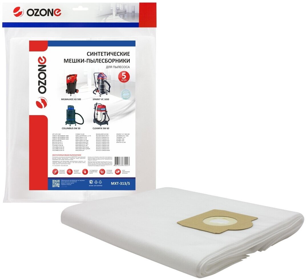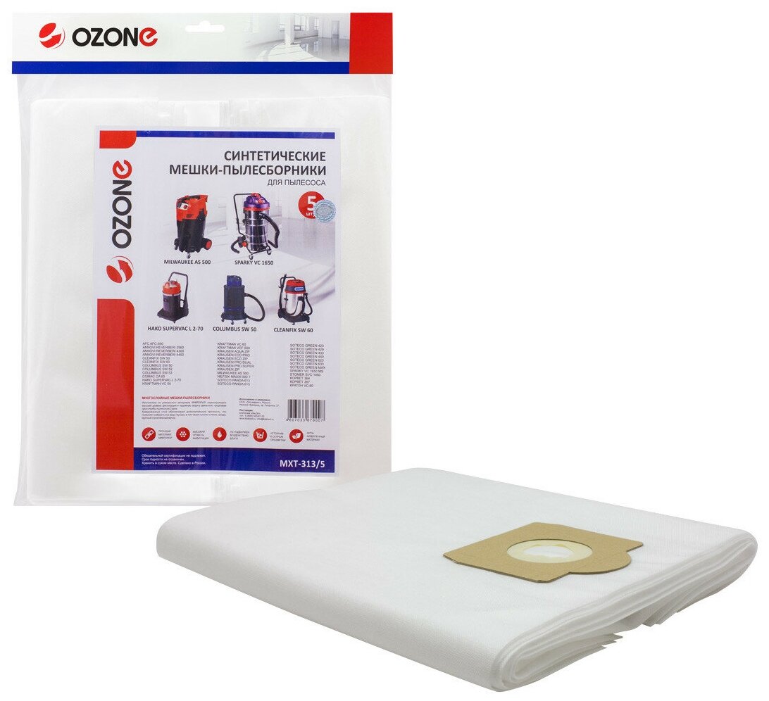 Мешки-пылесборники Ozone синтетические 5 шт для AFC, ANNOVI REVERBERI, BAIYUN и др.