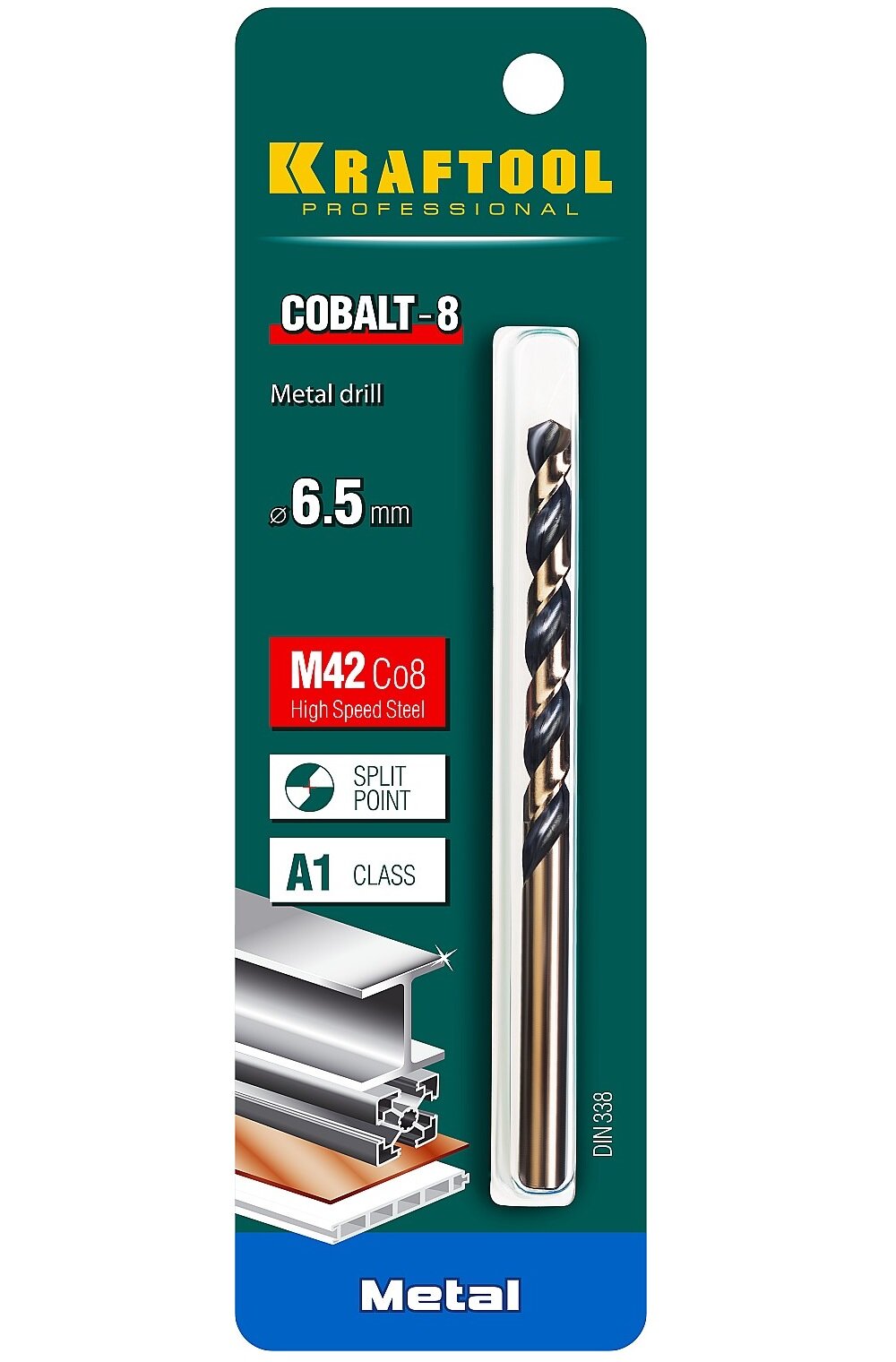 KRAFTOOL COBALT 6.5 х101мм, Сверло по металлу HSS-Co(8%) , сталь М42(S2-10-1-8) (29656-6.5)