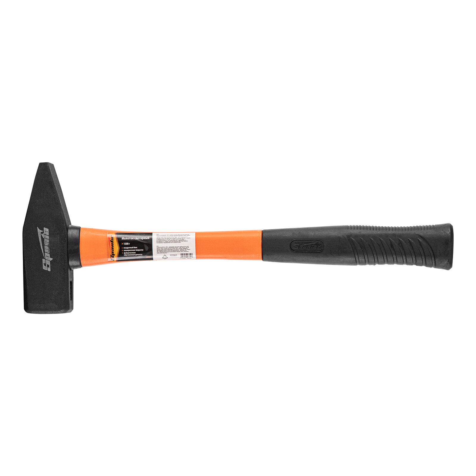Молоток слесарный, 1500 г, фибергласовая обрезиненная рукоятка Sparta 10381