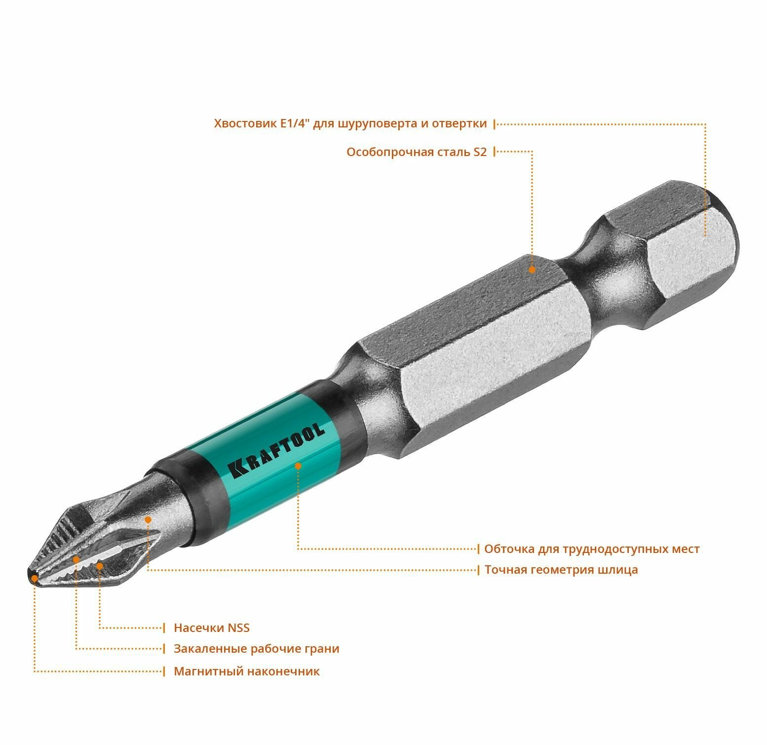 KRAFTOOL Биты PH1, 50 мм, тип хвостовика E 1/4", . в блистере KRAFTOOL