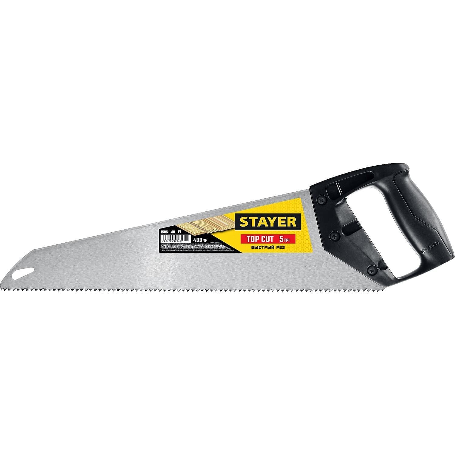 STAYER Ножовка ударопрочная (пила) "TopCut" 400 мм, 5 TPI, быстрый рез поперек волокон, для крупных и средн