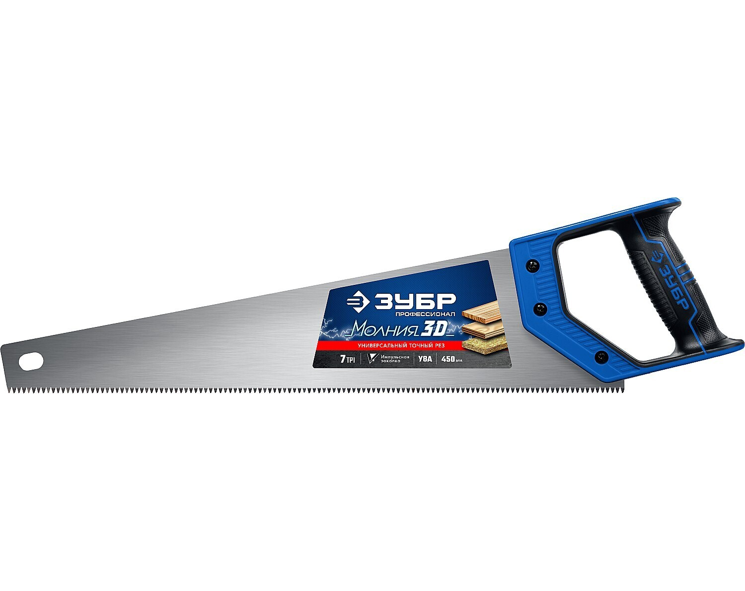 Ножовка универсальная (пила) ″МОЛНИЯ-3D″ 450мм, 7TPI, 3D зуб, точный рез вдоль и поперек волокон, для средних заготовок из всех видов материалов, ЗУБР (15077-45_z01)