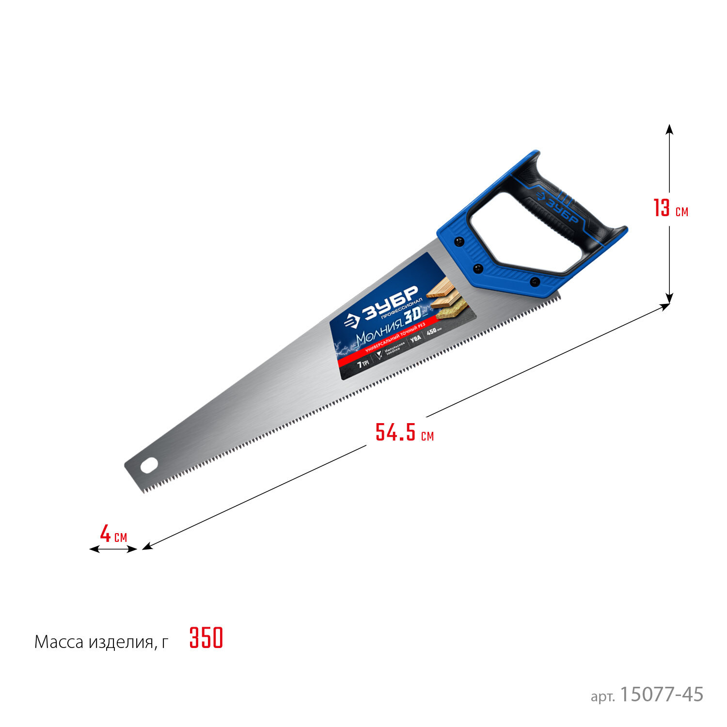 ЗУБР Молния-3D 450 мм, Универсальная ножовка (15077-45)