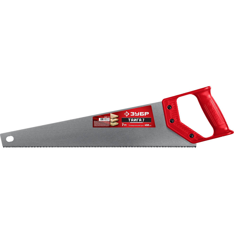 Ножовка универсальная (пила) ТАЙГА-7 450мм,7TPI, закаленный зуб, рез вдоль и поперек волокон, для средних заготовок, фанеры, ДСП, МДФ, ЗУБР 15081-45
