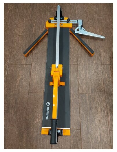 | Плюсы: | жеское основание, ровный срез, удобная ручка, дополнительные упоры для удобства реза плитки. |