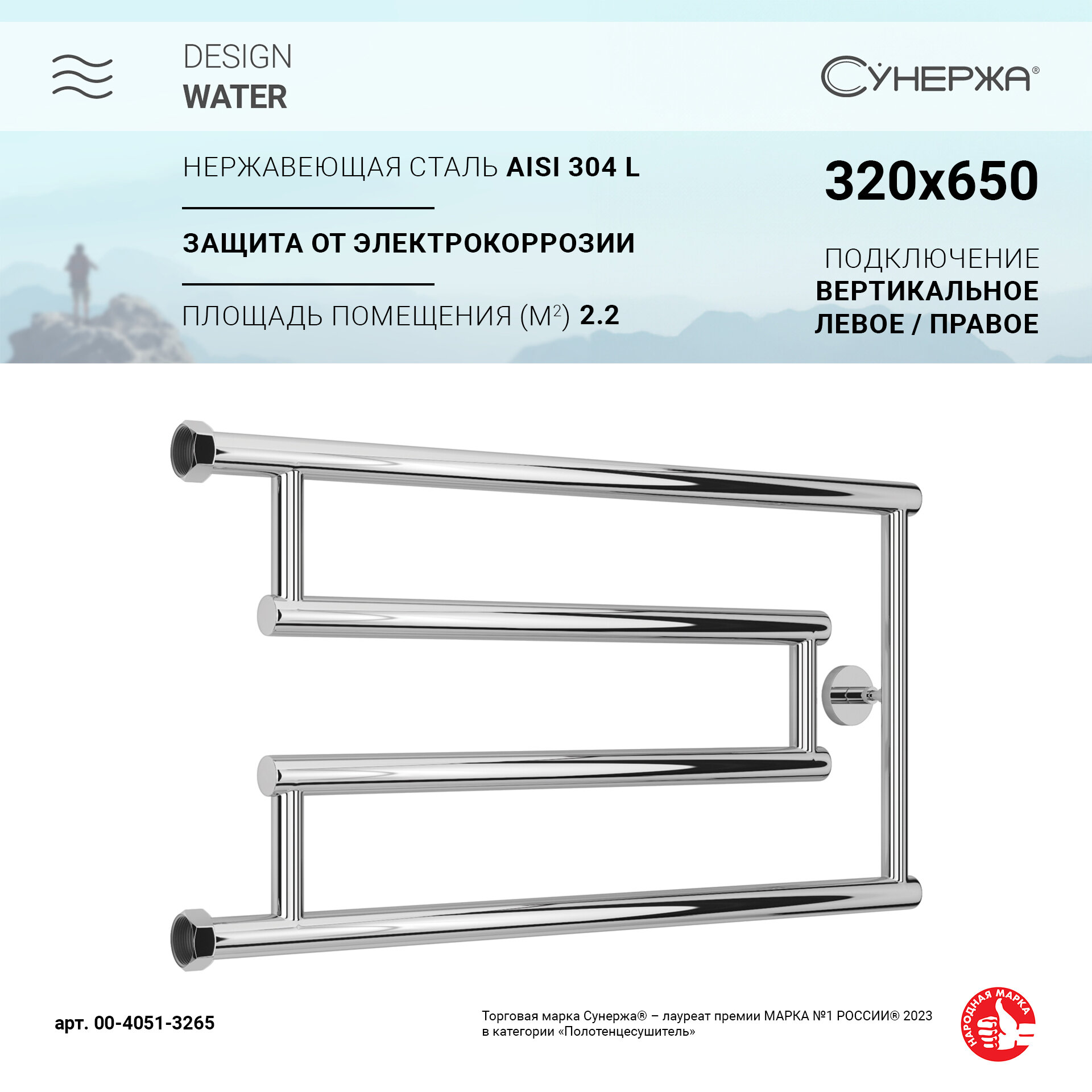 Водяной полотенцесушитель Сунержа High-Tech G+ 320x650 арт. 00-4051-3265