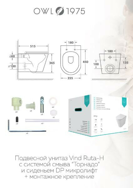 OWL Унитаз подвесной Vind Ruta-H с сиденьем микролифт OWLT190304 OWL