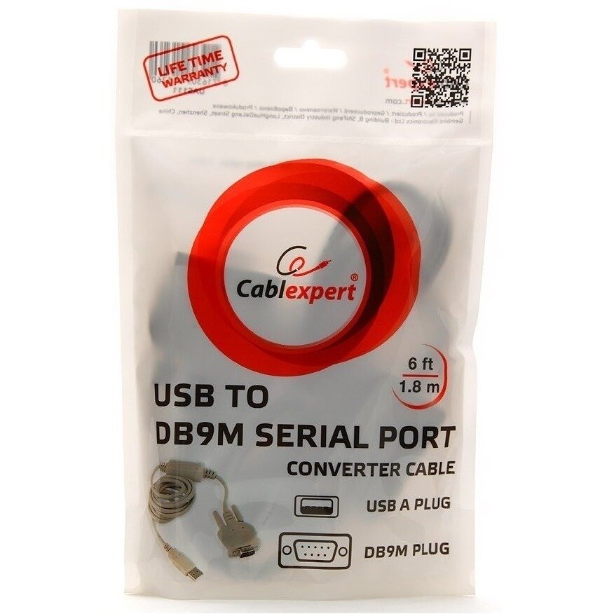 Адаптер Cablexpert AM/DB9М UAS111 USB-Serial (COM) RS232, 1.8 м, WinXP-Win10, пакет