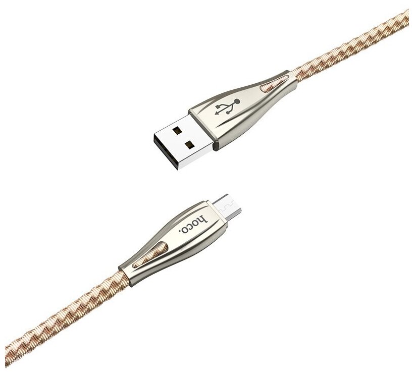 Кабель USB HOCO U56 Metal armor USB - MicroUSB, 2.4А, 1.2 м, золотой