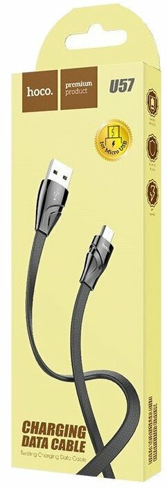 Дата-кабель Hoco U57 USB-MicroUSB (2.4 A) 1.2 м, черный