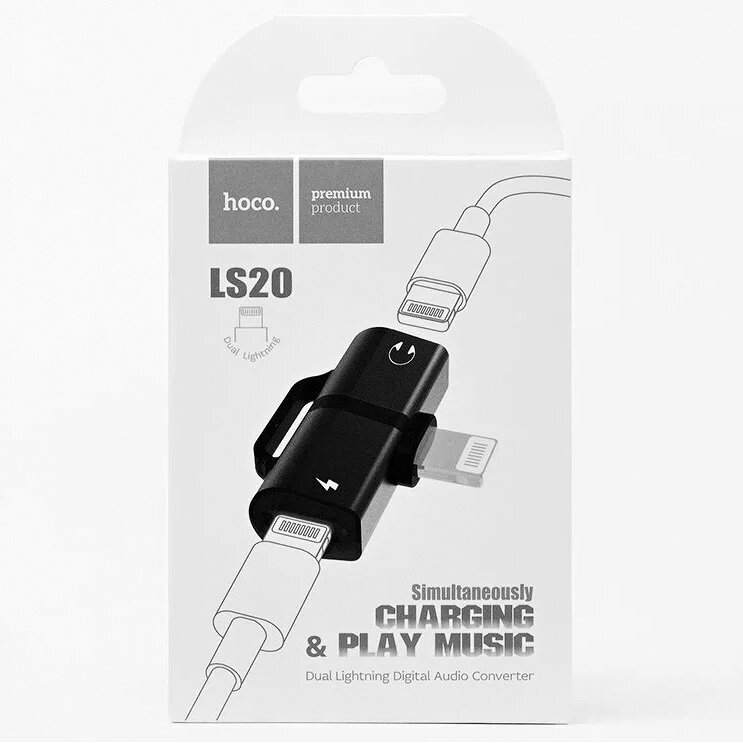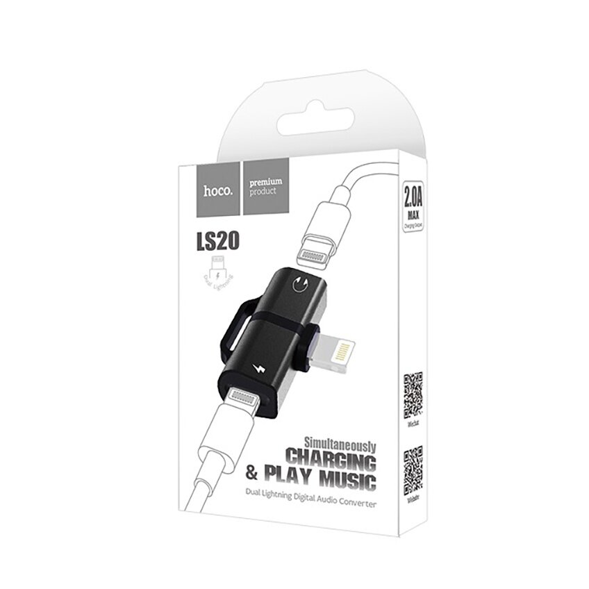 Переходник Hoco LS20 Apple Dual Lightning Digital Audio Converter, черный