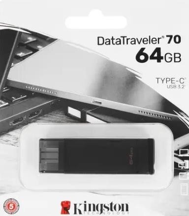 Память USB 3.2/USB Type C 64 GB Kingston DataTraveler 70, черный (DT70/64GB)