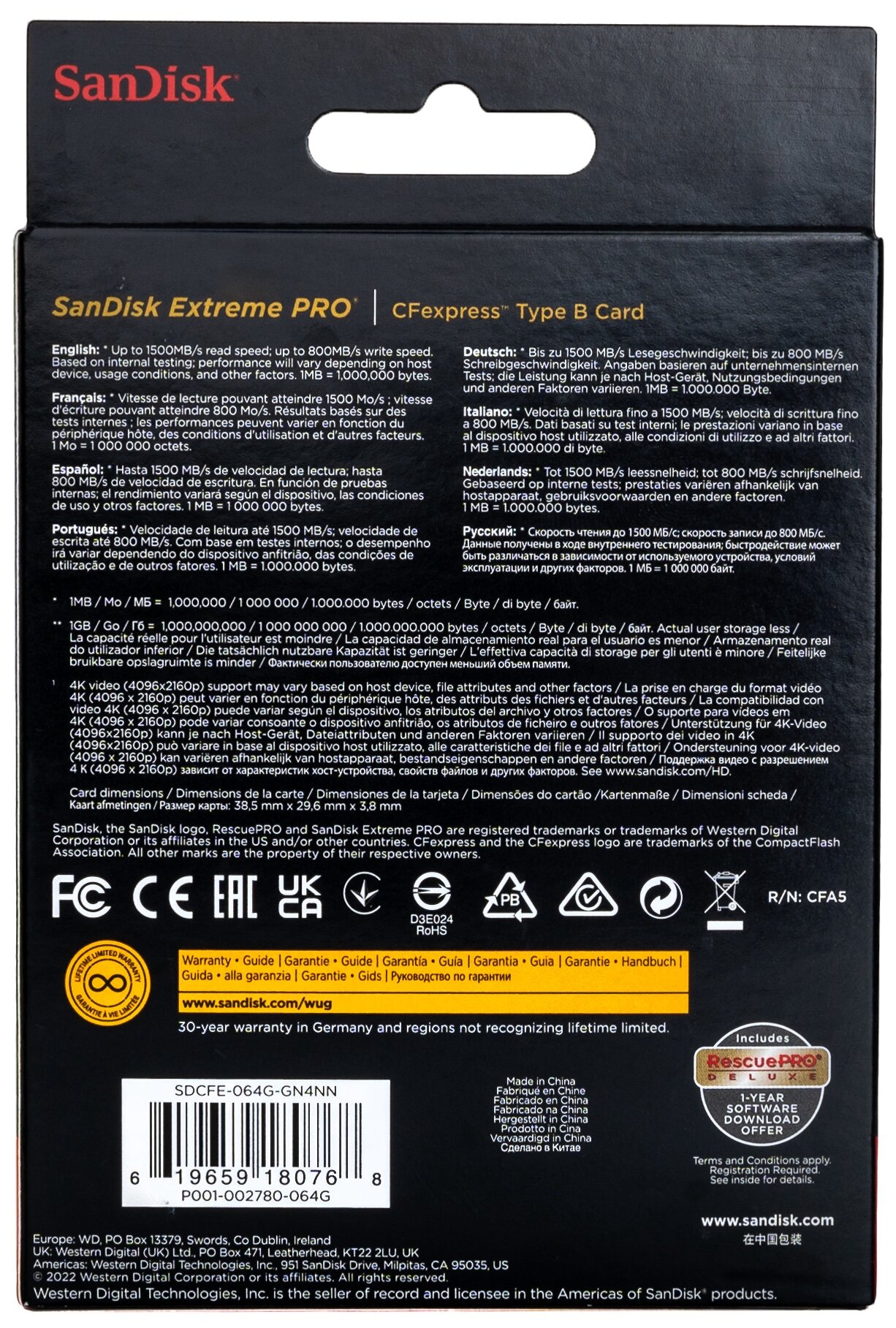 Карта памяти SanDisk CFexpress Type B 64 ГБ Class 10, R/W 1500/800 МБ/с