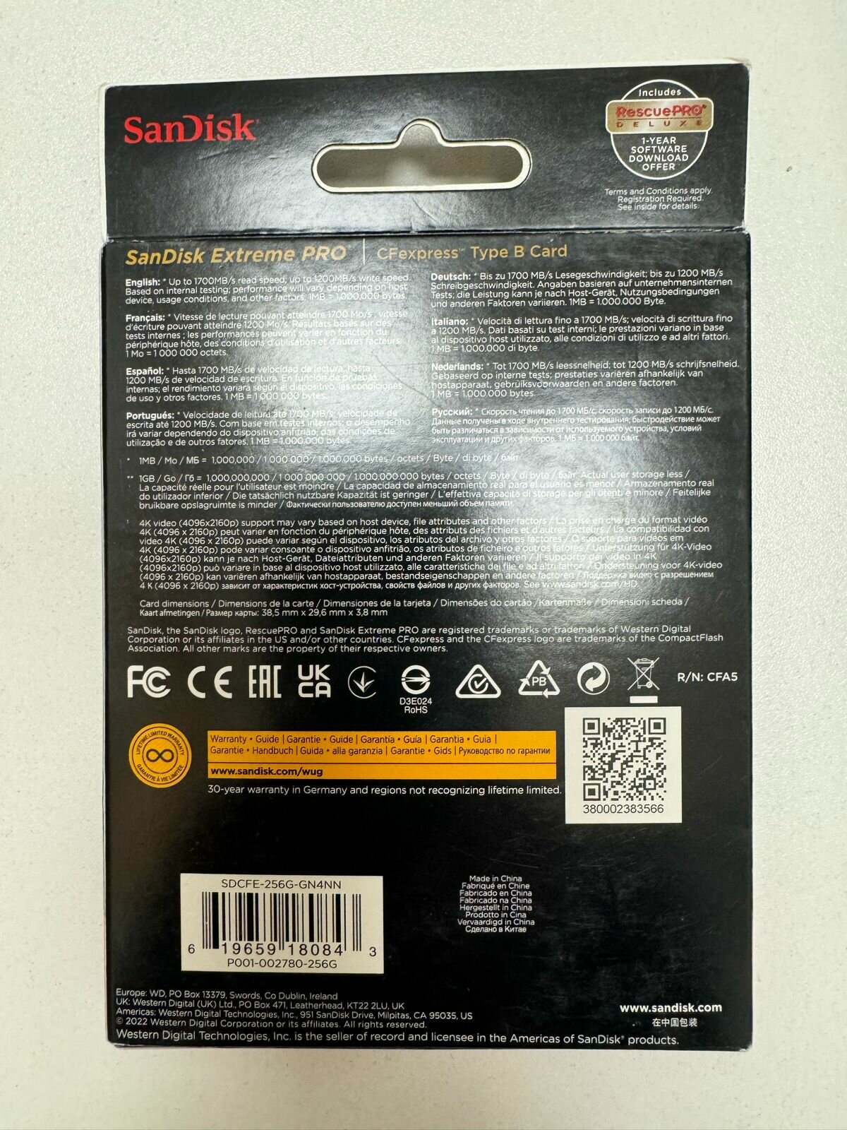Карта памяти SanDisk CFexpress Type B 256 ГБ Class 10, R/W 1700/1200 МБ/с