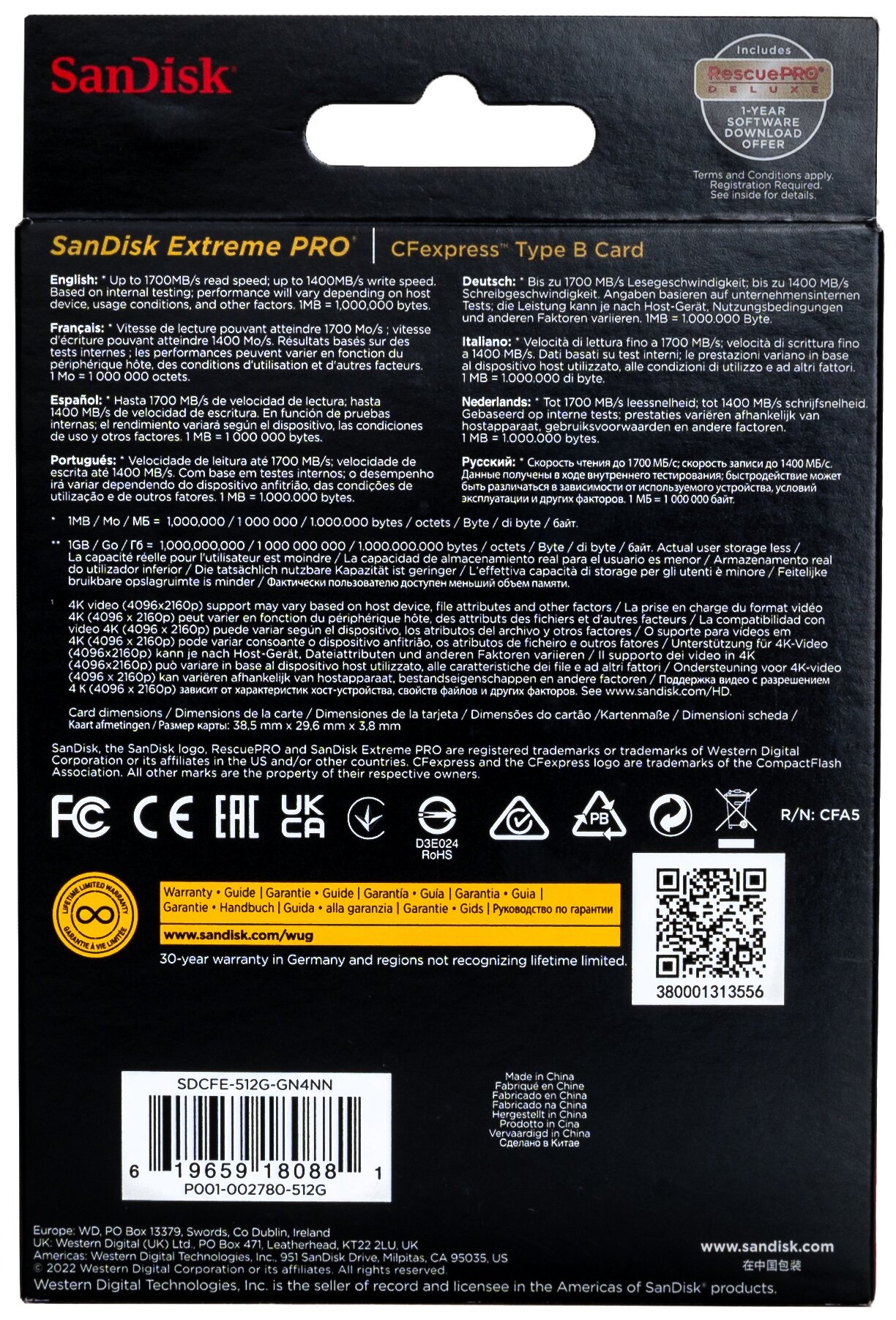 Карта памяти SanDisk CFexpress Type B 512 ГБ, R/W 1700/1400 МБ/с