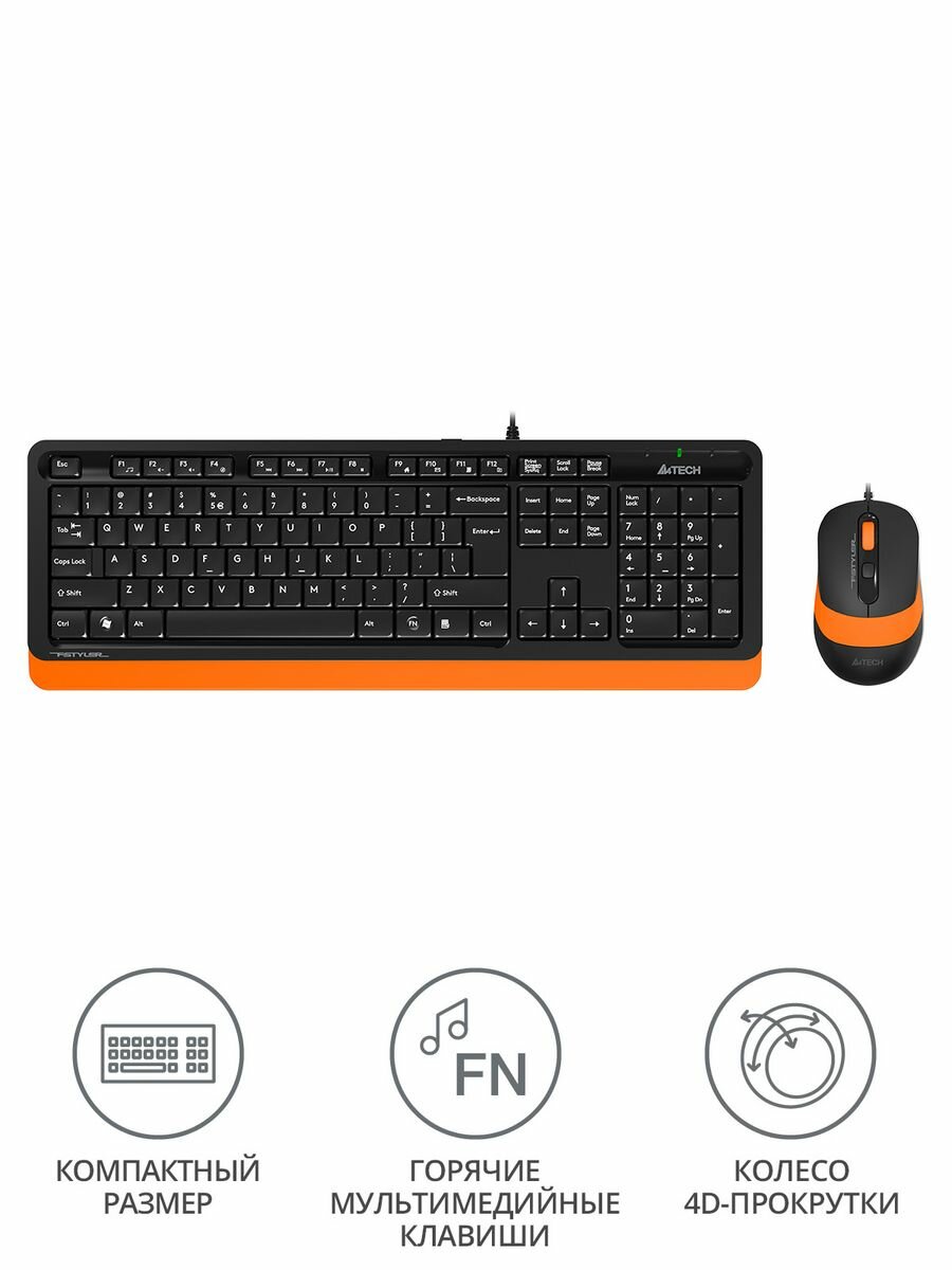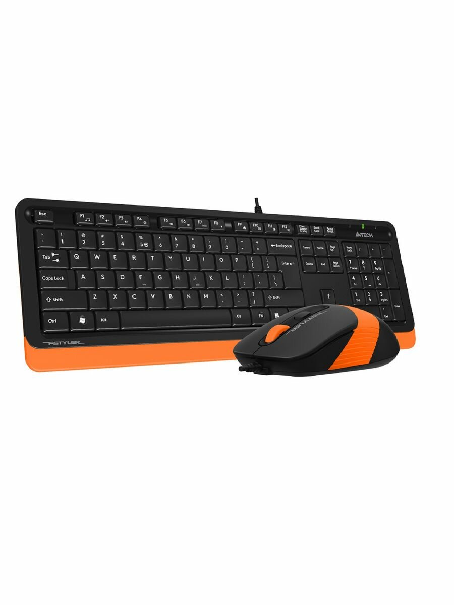 Купить Комплект (клавиатура+мышь) A4TECH Fstyler F1010, USB, проводной, черный и оранжевый [f1010 orange]