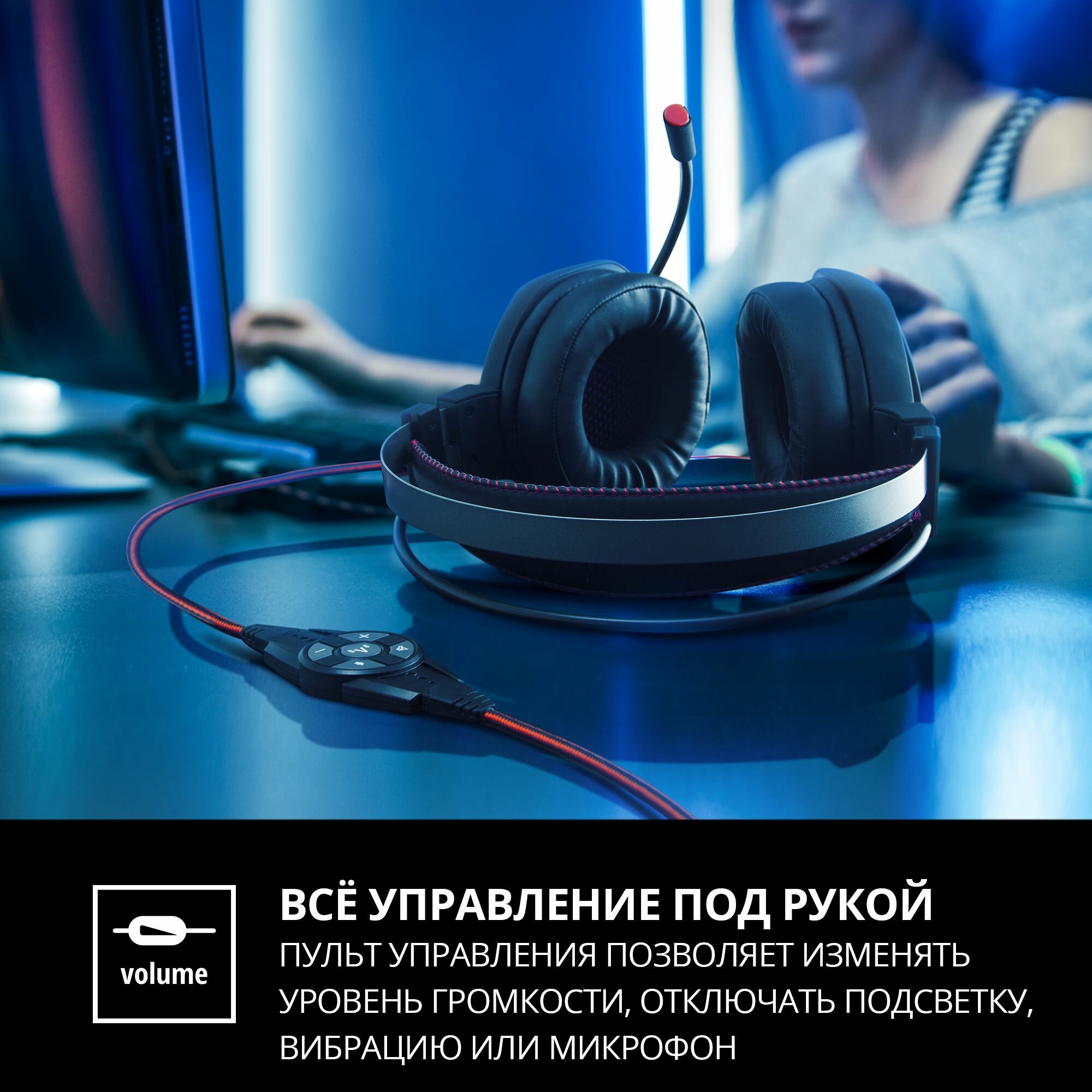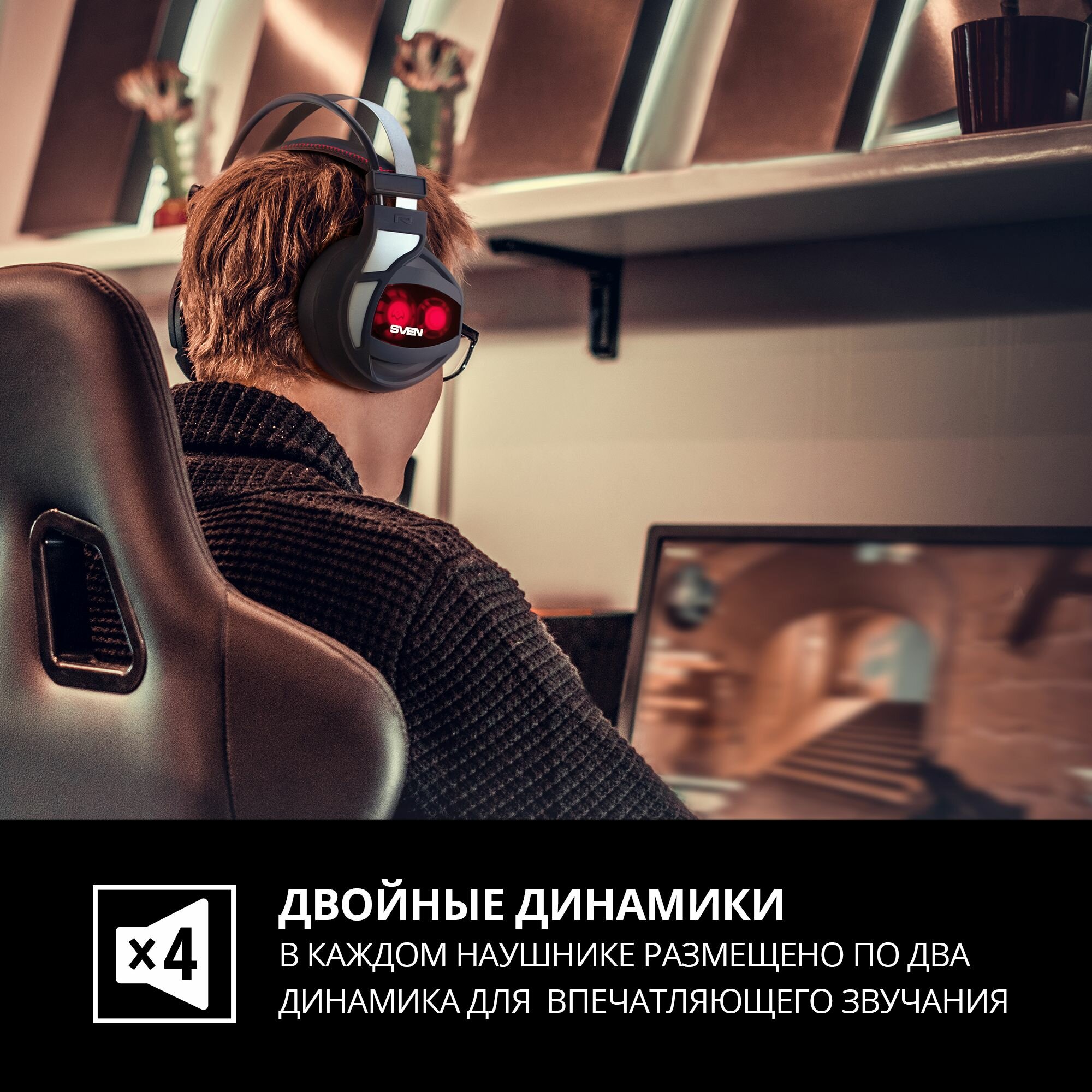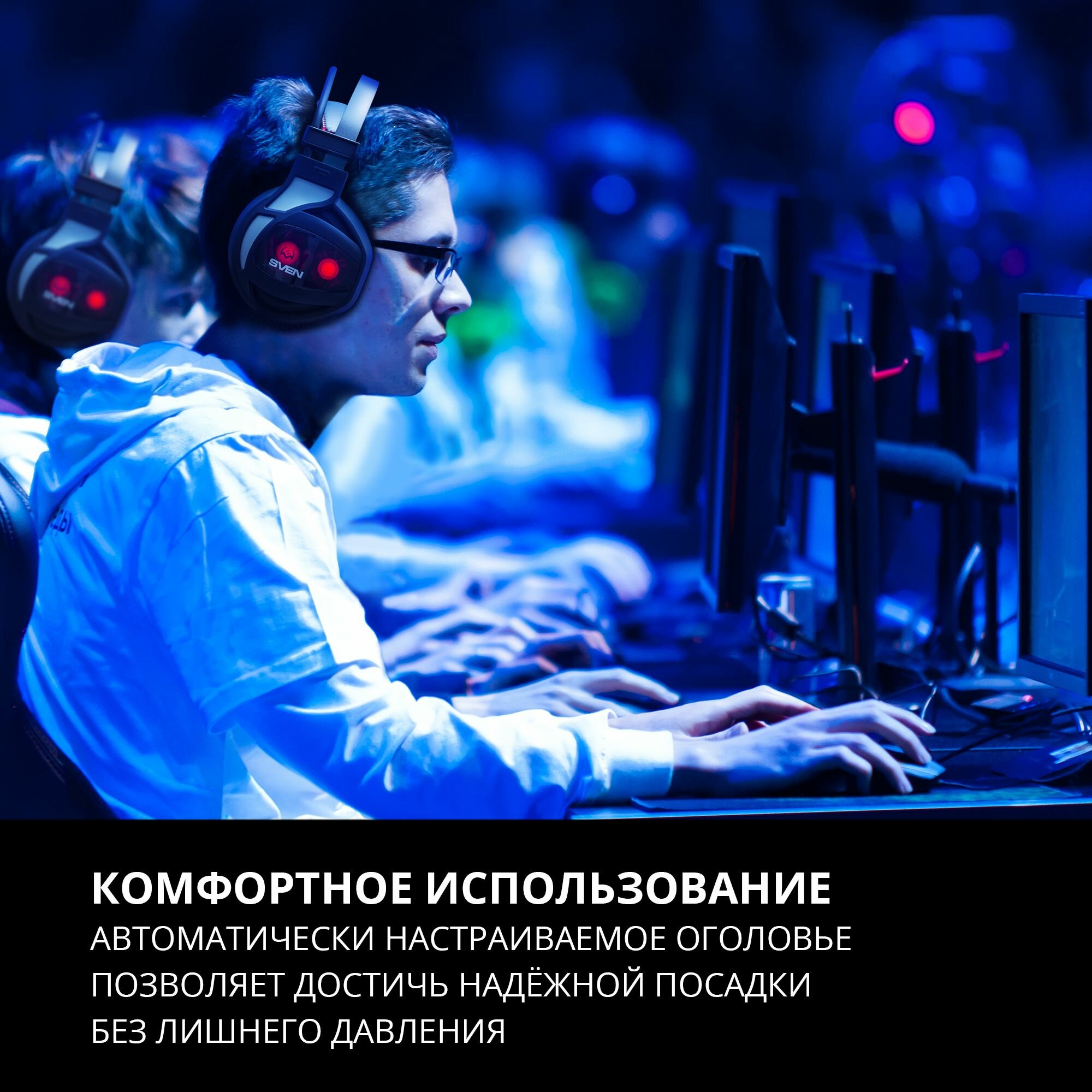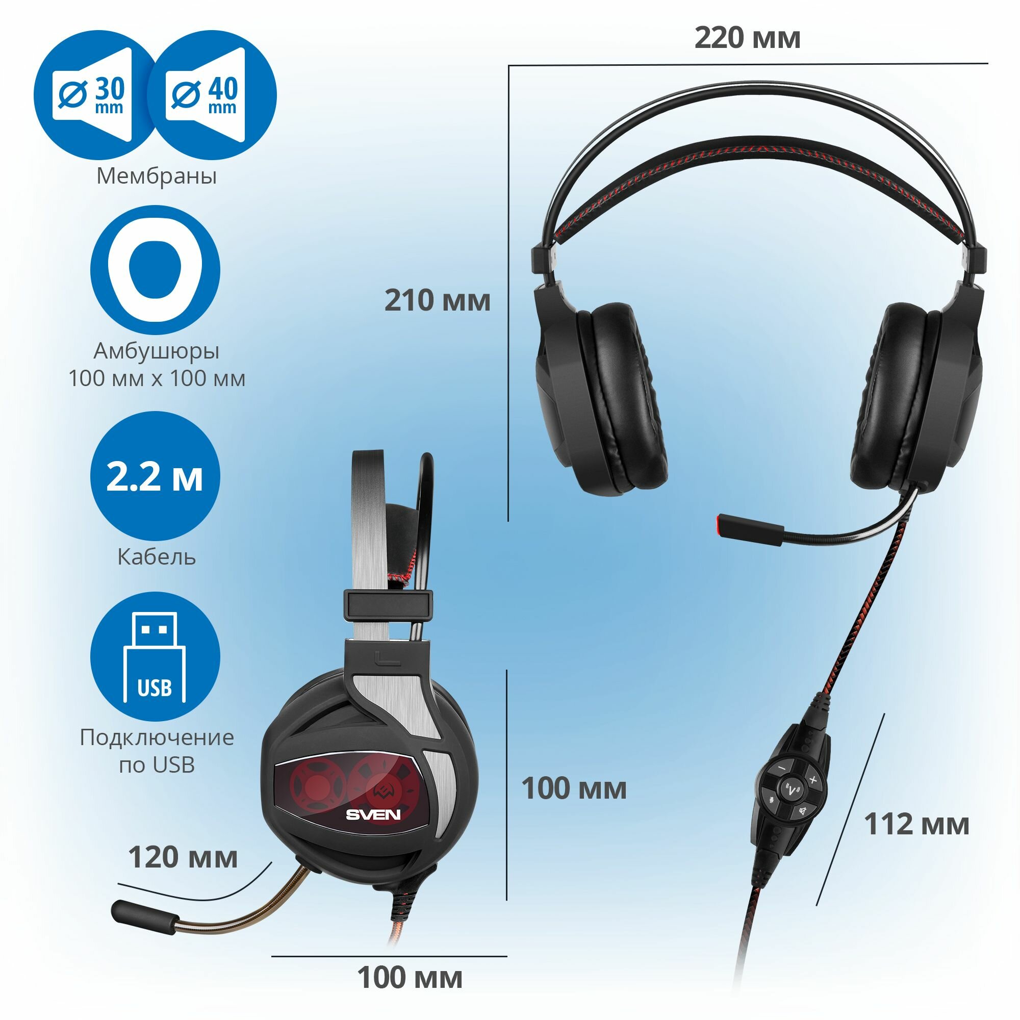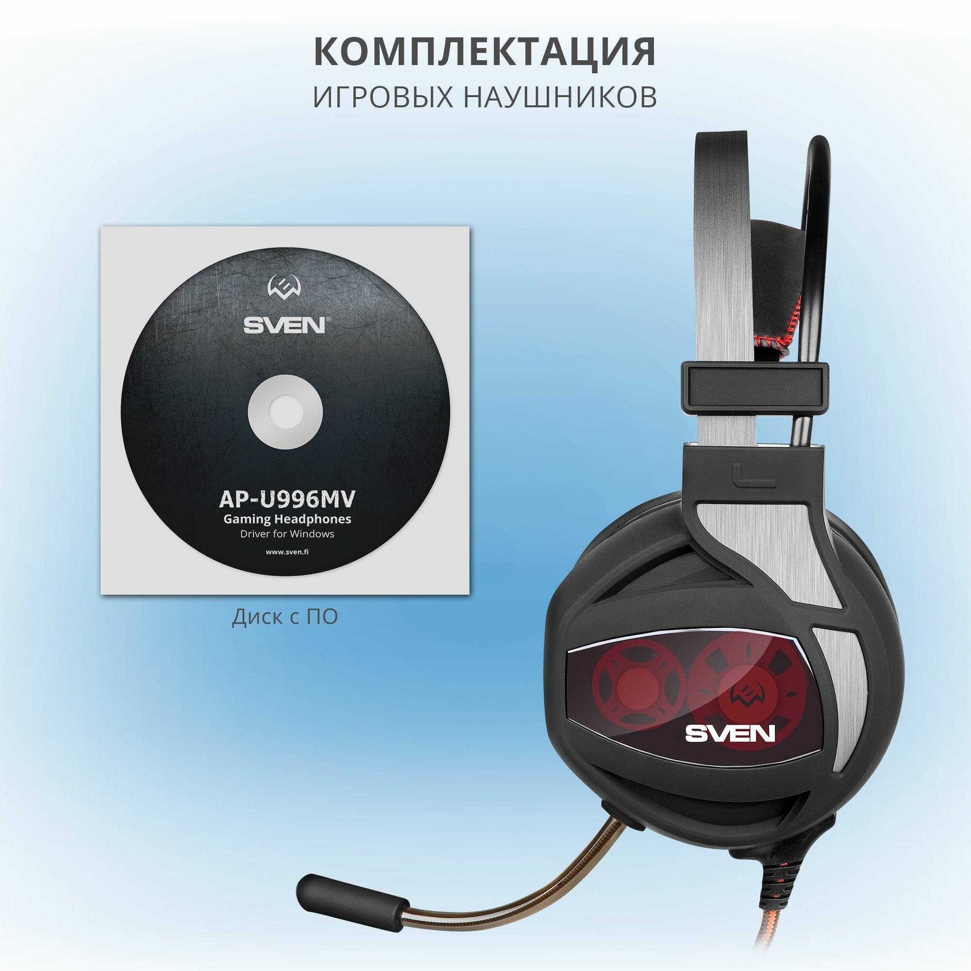 SVEN AP-U996MV Игровые наушники с микрофоном черные (40 мм + 30 мм, USB, 7.1, LED подсветка)