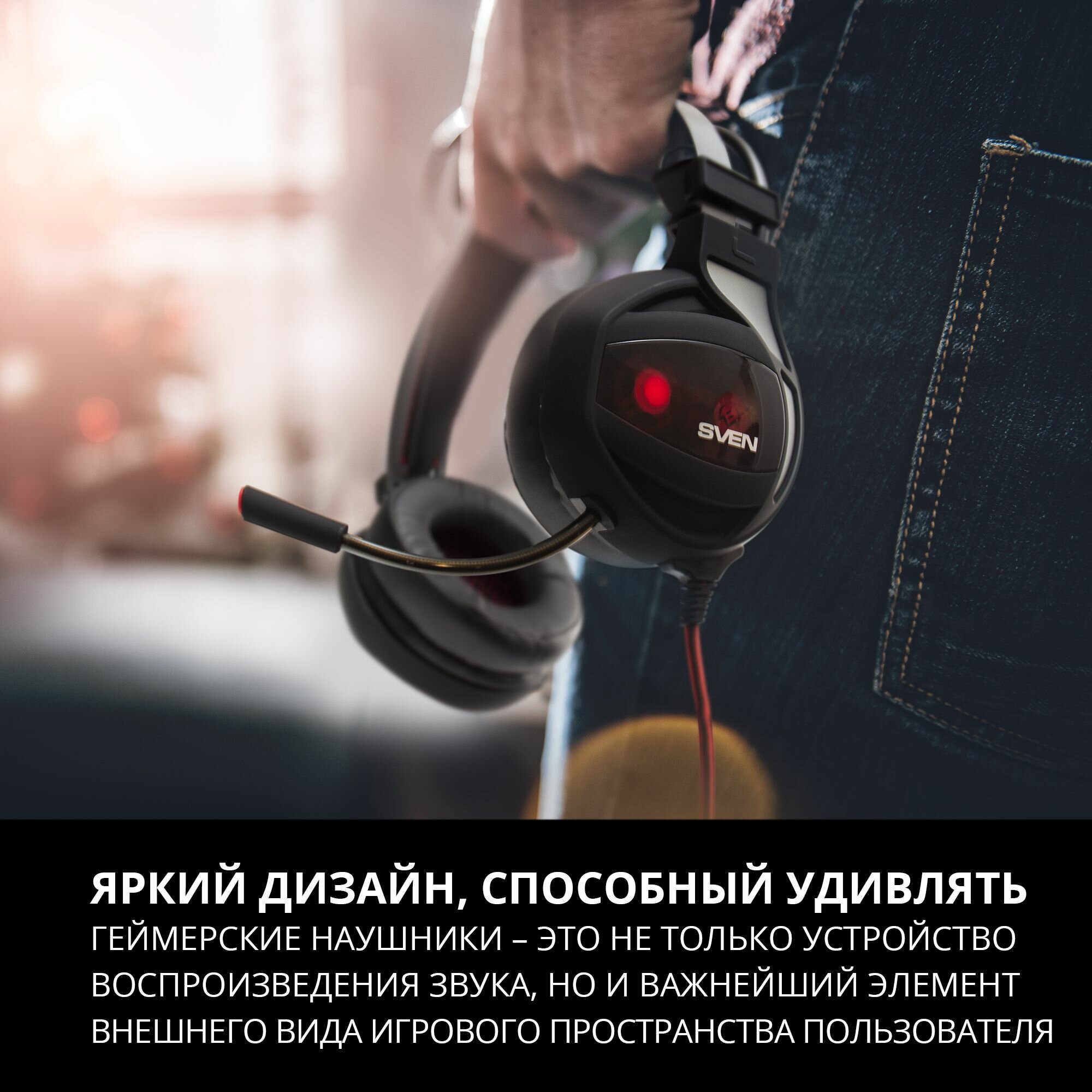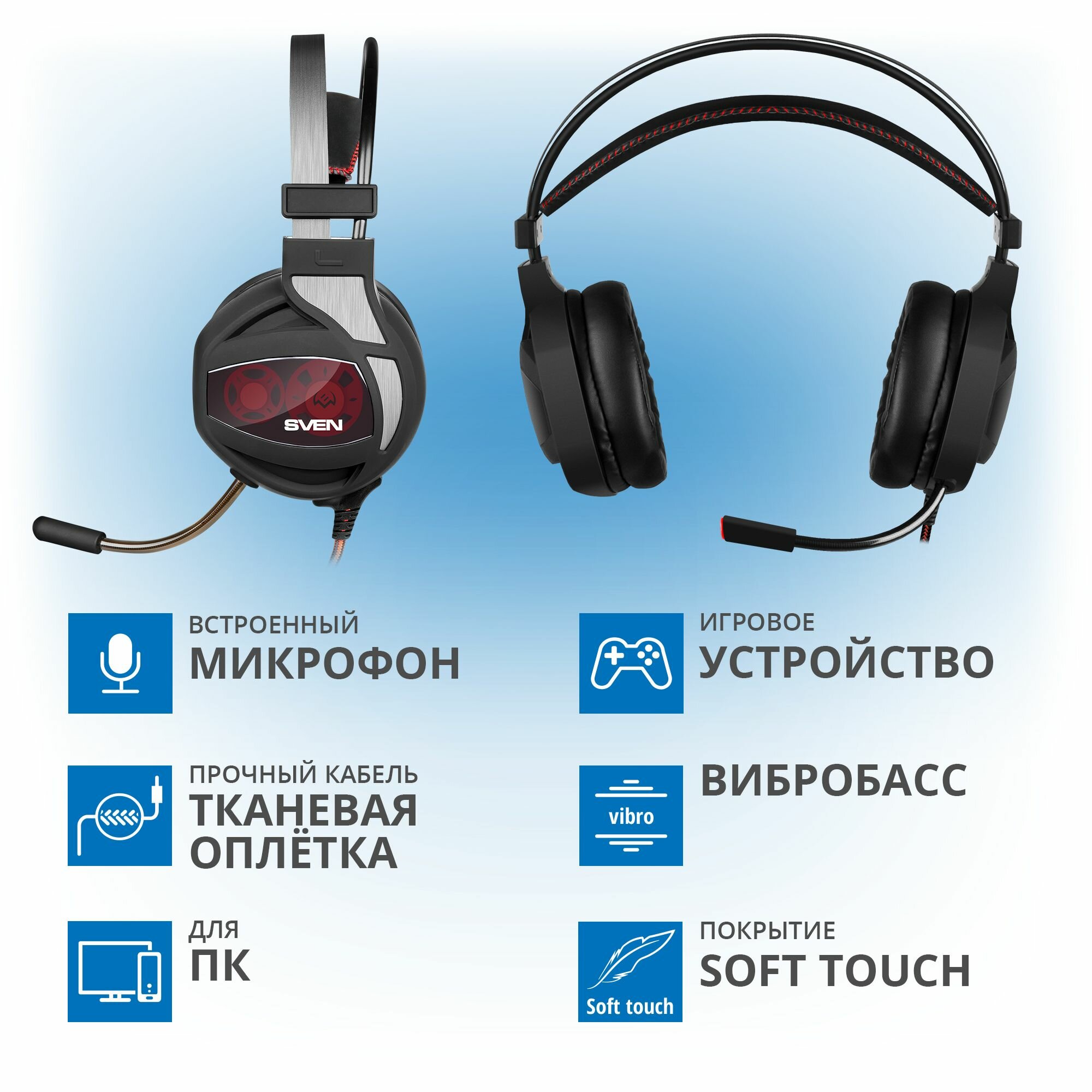 Гарнитура игровая Sven AP-U996MV, для компьютера и игровых консолей, мониторные, проводные, черный красный