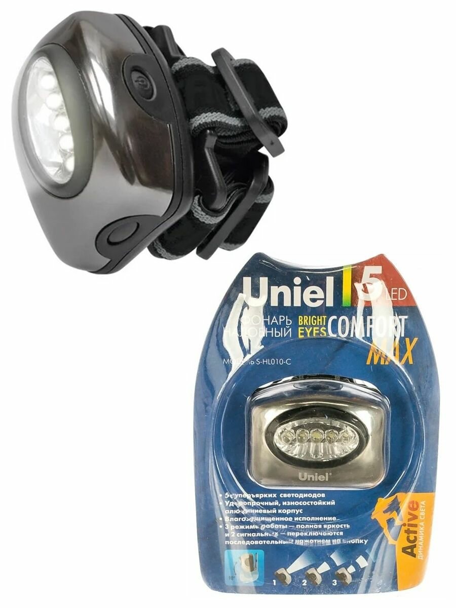 Купить Фонарь Uniel Налобный S-hl010-c Стандарт 5ХLED 3ХААА Алюмин Корп Кламшел Uniel 03211 .