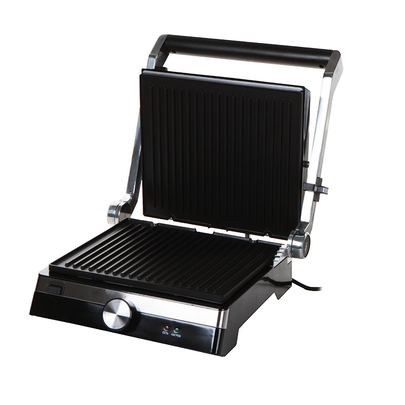 Советую обратить внимание, в первую очередь, на раздел "что не понравилось". "Тяжёлый, прочный, покрыт нержавейкой, что оставляет общее ощущение надёжности. Съемные нагревательные панели: удобно мыть. Система регулирования температуры и реле времени аналоговые: нечему "гореть". Верхняя панель фксируется по высоте в трёх положениях плюс свободное: режим пресса (двустороннего контакта). Раскладывается на 180 градусов: обе панели могут использоваться одновременно как плита". |