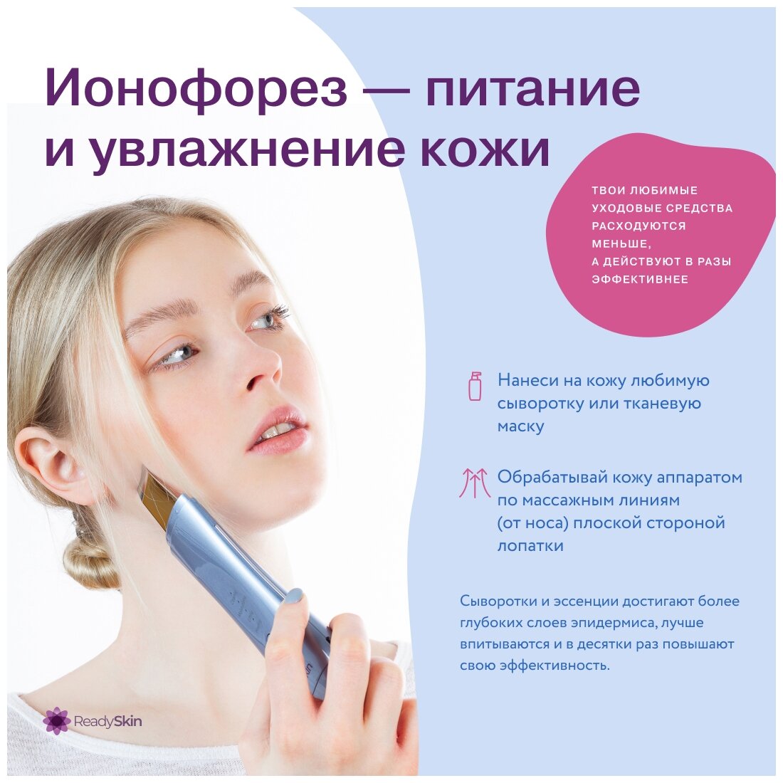 Аппарат для ультразвуковой чистки, ионофореза, микромассажа и термомассажа лица ReadySkin ZY8300 + гель 250мл интересное: