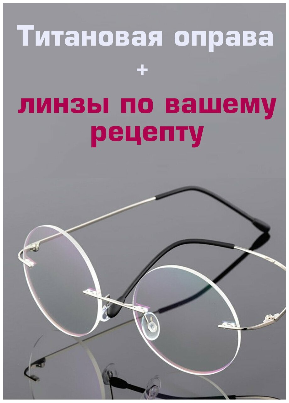 СохранитьОчки круглые/Очки с диоптриями/Очки женские/Очки мужские/Очки для зрения/Очки по рецепту /оправа безободковая титановая Silver интересное: