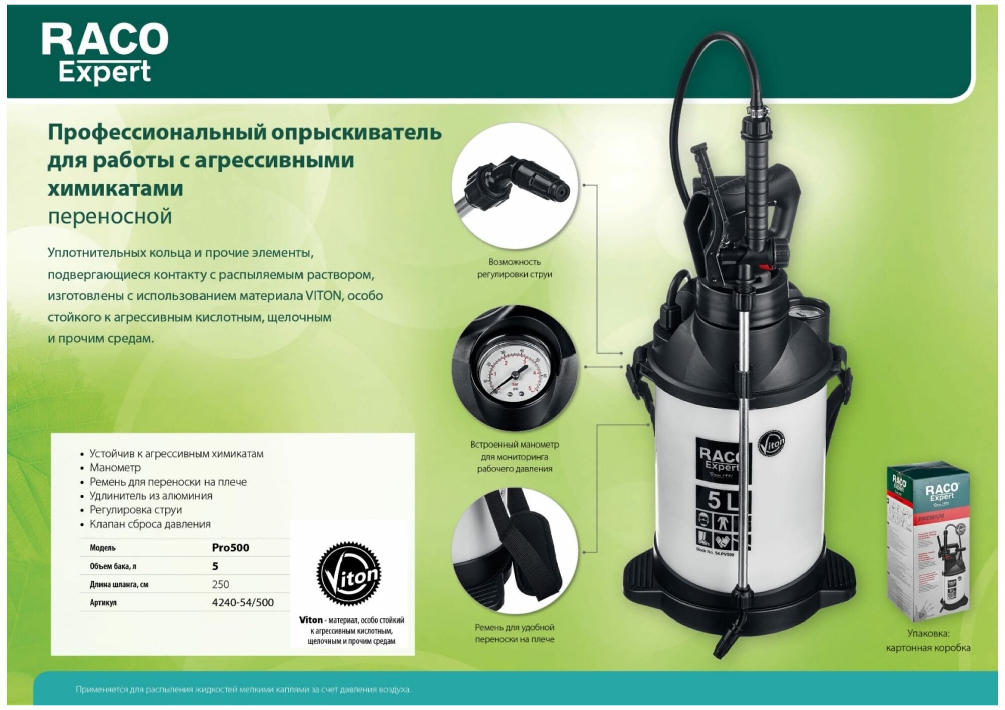 RACO Pro 500, для работы с агрессивными химикатами, 5 л, опрыскиватель (4240-54/500)