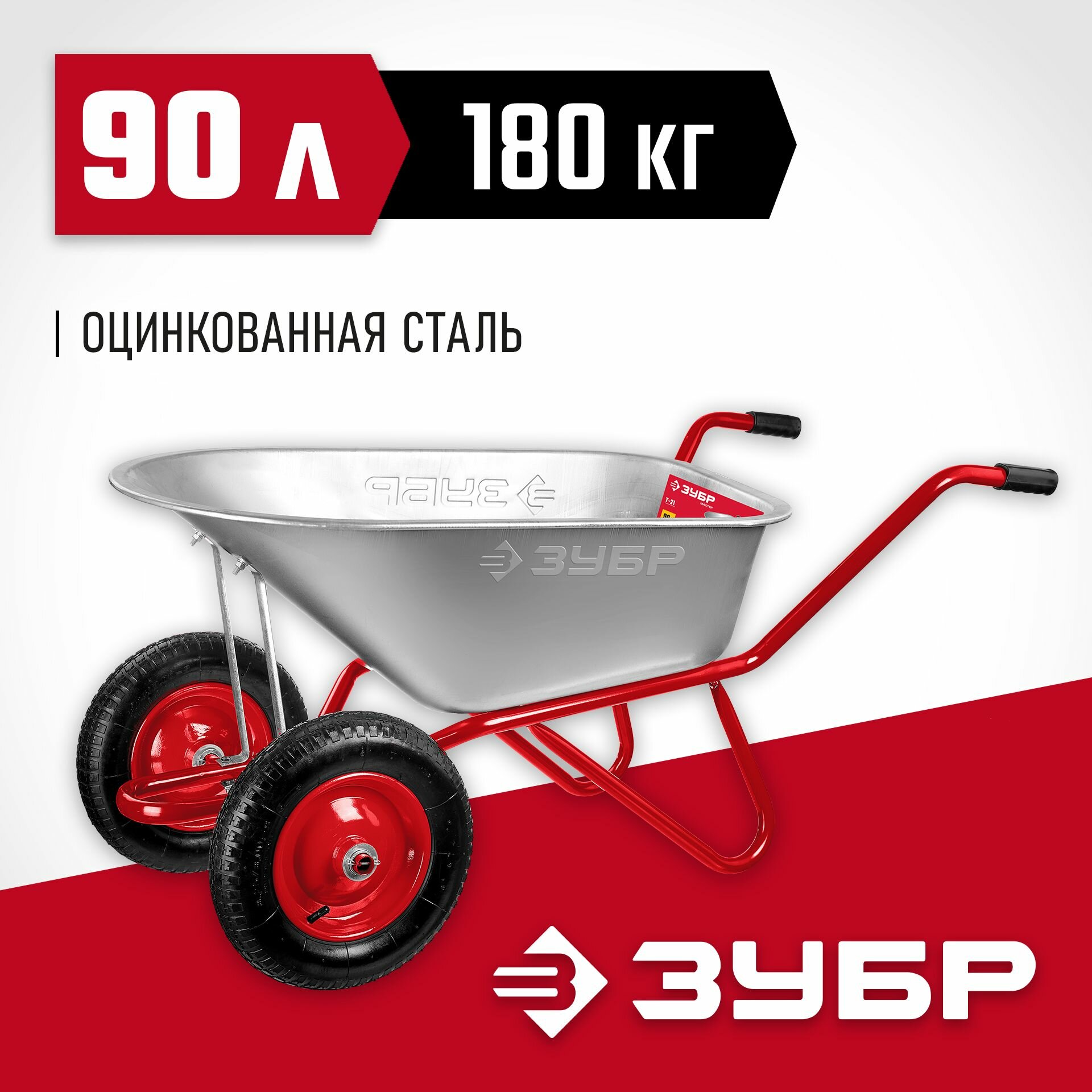 Тачка ЗУБР Т-21 39952, 90 л, 180 кг