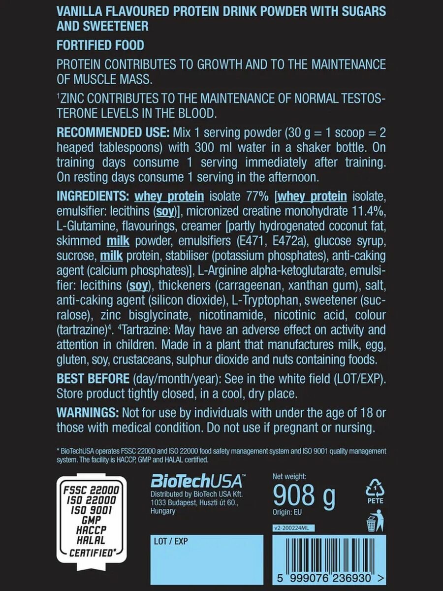 В протеине присутствует моногидрат креатина, считаю это абсолютно ненужным. Вкус приторный. Не покупайте это. В протеине присутствует гидрогенизированное кокосовое масло. Зачем????? Сухое молоко, зачем???? |