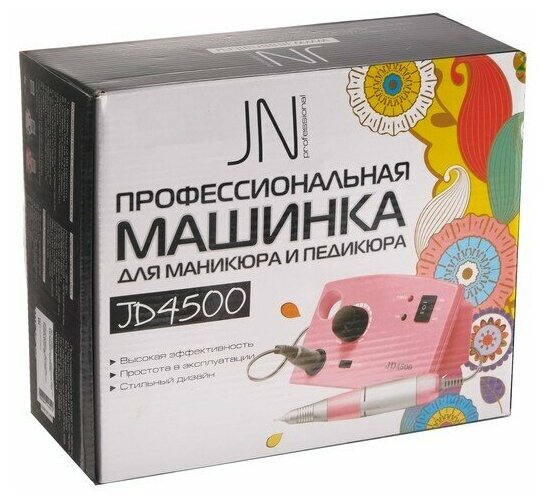 Аппарат для маникюра и педикюра JessNail Jd4500, 4 фрезы 30000 об/мин, 35 Вт, розовая JessNail 72923 .