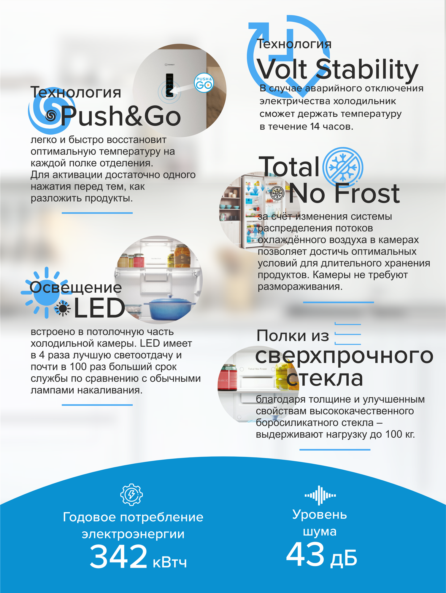 | Плюсы: | Вместительная морозилка, полный no-frost не требуется регулярная разморозка. |