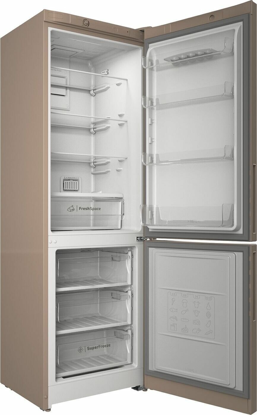 Холодильник Indesit ITR 4180 Е двухкамерный, класс энергоэффективности A, Full No Frost, полезный объем 298 л, автономное сохранение холода 14 ч, бежевый