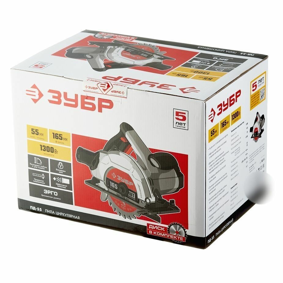 Циркулярная пила (дисковая) Zubr ПД-55 1300Вт (ручная)