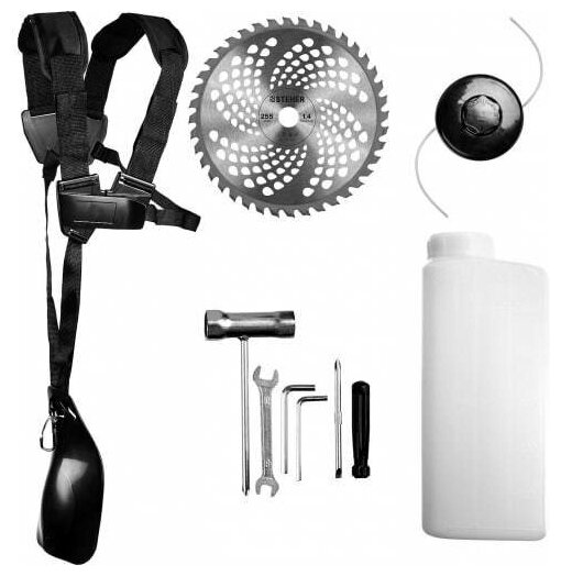 | Подробная комплектация | коса бензиновая - 1 шт.; велосипедная рукоятка - 1 шт.; кожух защитный - 1 шт.; диск - 1 шт.; катушка с леской - 1 шт.; ключи - 1 комплект; фиксатор вала - 1 шт.; плечевая подвеска - 1 шт.; емкость для смешивания - 1 шт.; руководство по эксплуатации - 1 шт. |