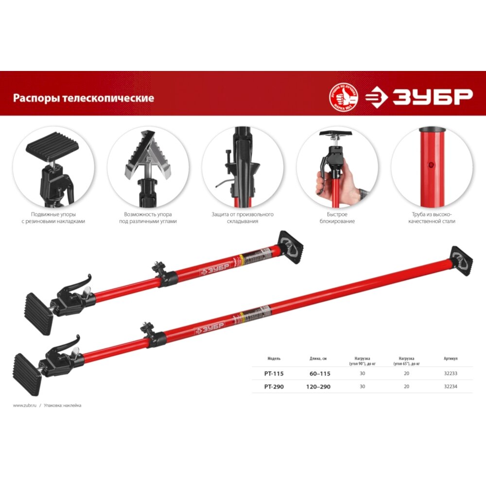 Зубр РТ-115 распор телескопический 60-115 см, 32233 .