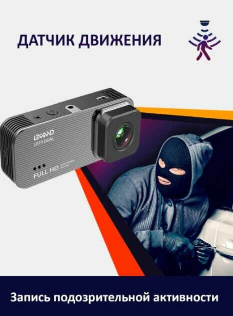 Видеорегистратор LEXAND LR19 Dual, 2 камеры, металлик