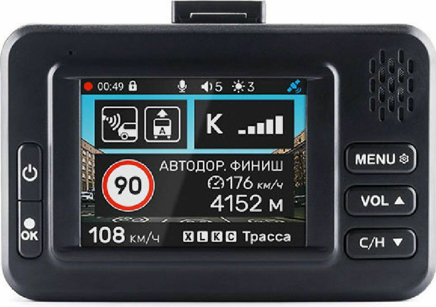 | Плюсы: | Неплохо снимает, ненавязчивое предупреждение о камерах/ радарах. |