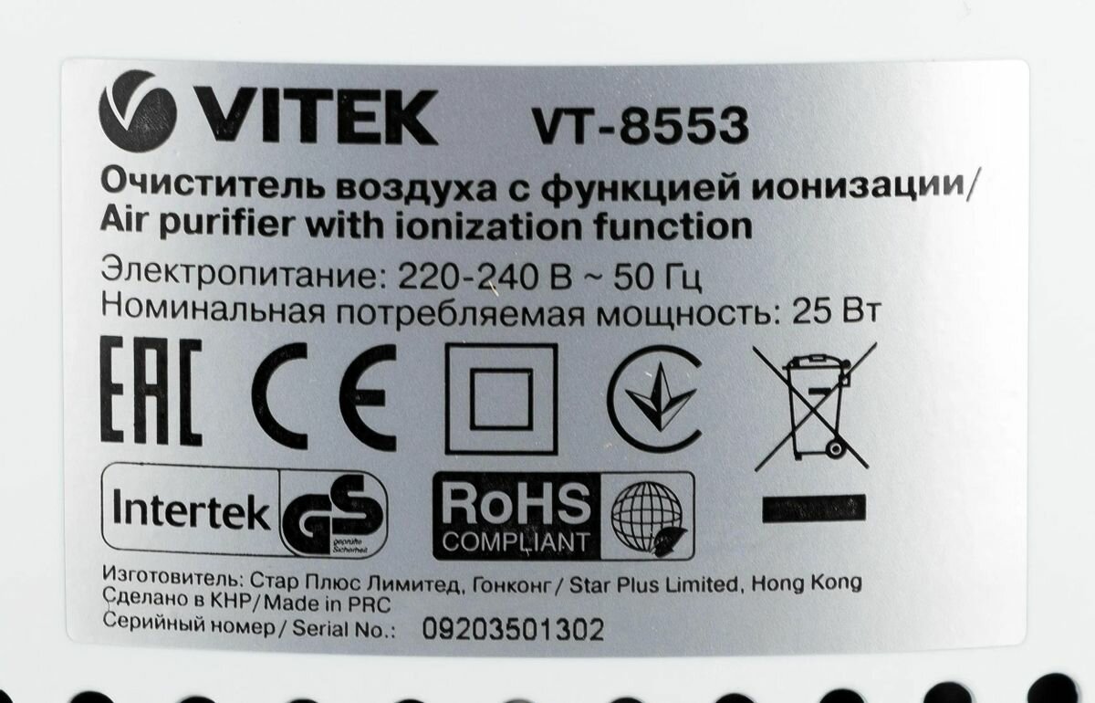 Воздухоочиститель VITEK 8553-VT-01, белый интересное: