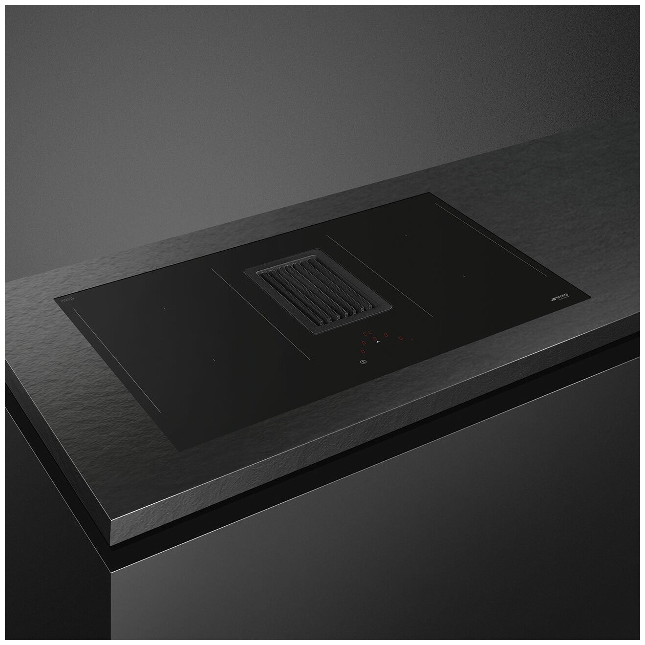 Купить Встраиваемые индукционные панели SMEG/ Индукционная варочная панель со встроенной вытяжкой, 83 см, прямой край, черное стекло