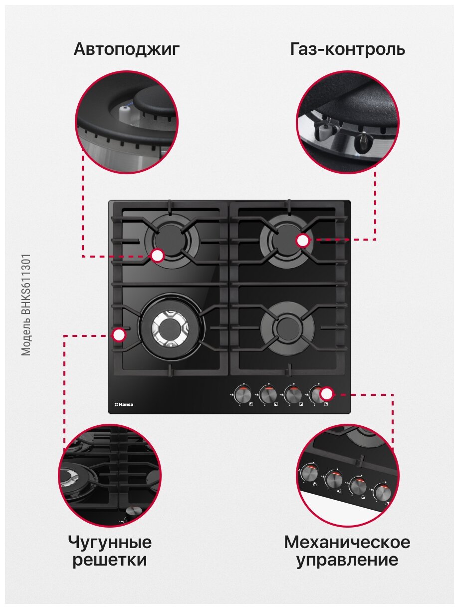 Газовая варочная панель Hansa BHKS611301 интересное: