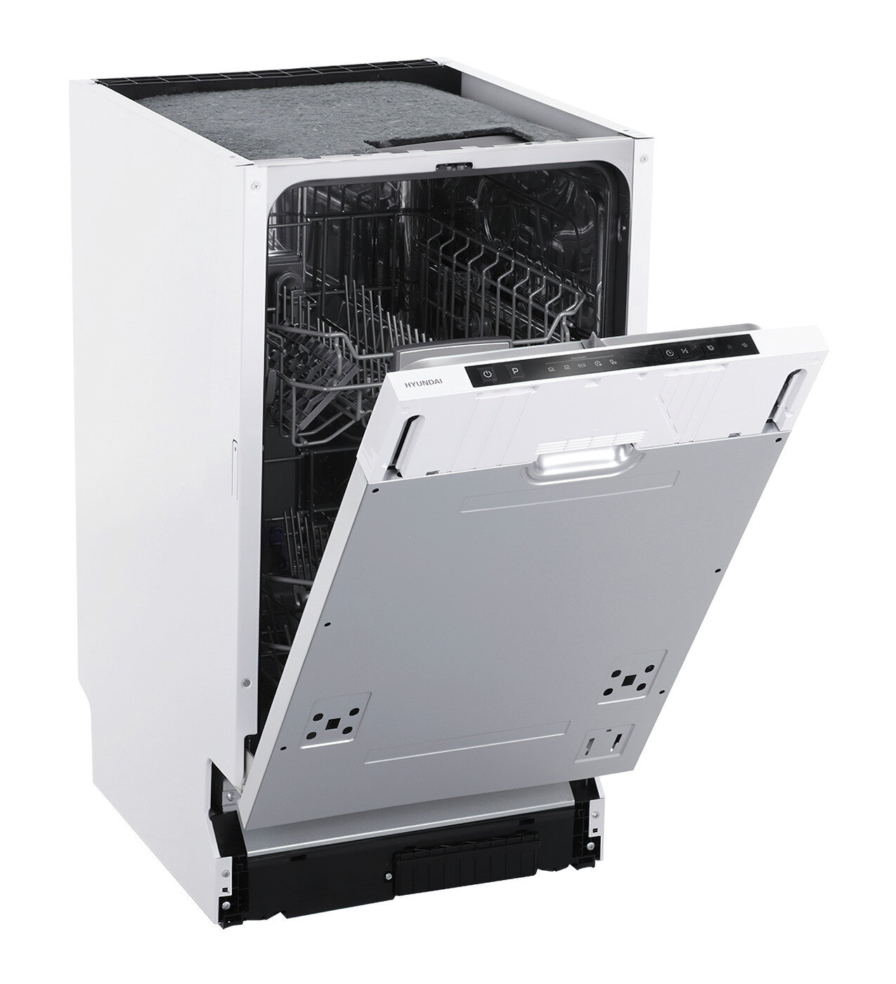 Встраиваемая посудомоечная машина Hyundai HBD 450, узкая, ширина 44.8см, полновстраиваемая, сереб