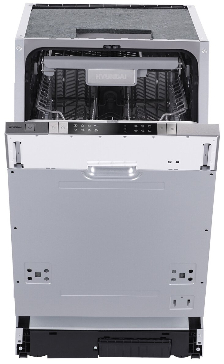 Встраиваемая посудомоечная машина Hyundai HBD 480, узкая, ширина 44.8см, полновстраиваемая, загрузка 10 комплектов, серебристый