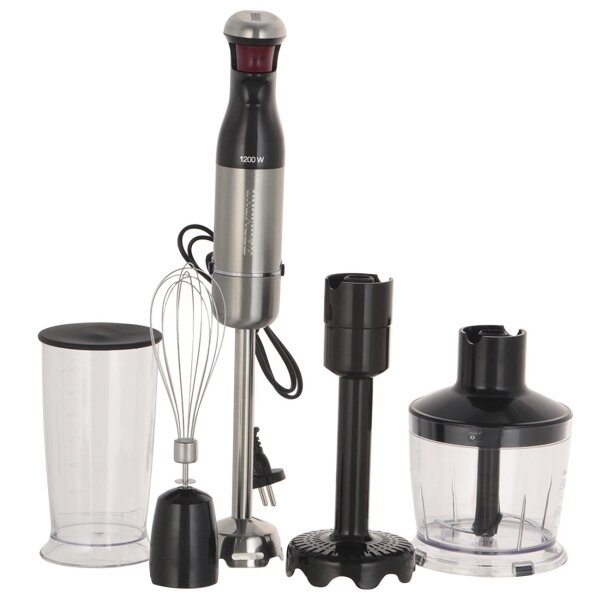 Венчик - стандартно взбивает, так же как и обычный миксер, крепкая проволока. Стакан - нормально, но мыть его сложнее, чем кастрюльку. Мельчитель - отличные пюре, собственно ради этого и дарил его, ягоды, фрукты, овощи, вареное мясо-рыбу измельчает хорошо. Для картофельного пюре - отлично, руками так не сделать, только шум противный )) Капучинатор - баловство, но соусы (белый, красный, горчичный) замешивать удобно. |