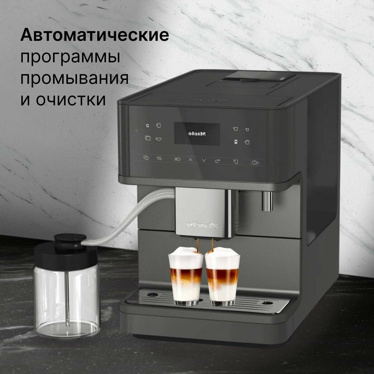 Отдельностоящая автоматическая кофемашина Miele Milk Perfection CM 6560, серый, зерновая, для Эспрессо, Ристретто, Капучино, Латте