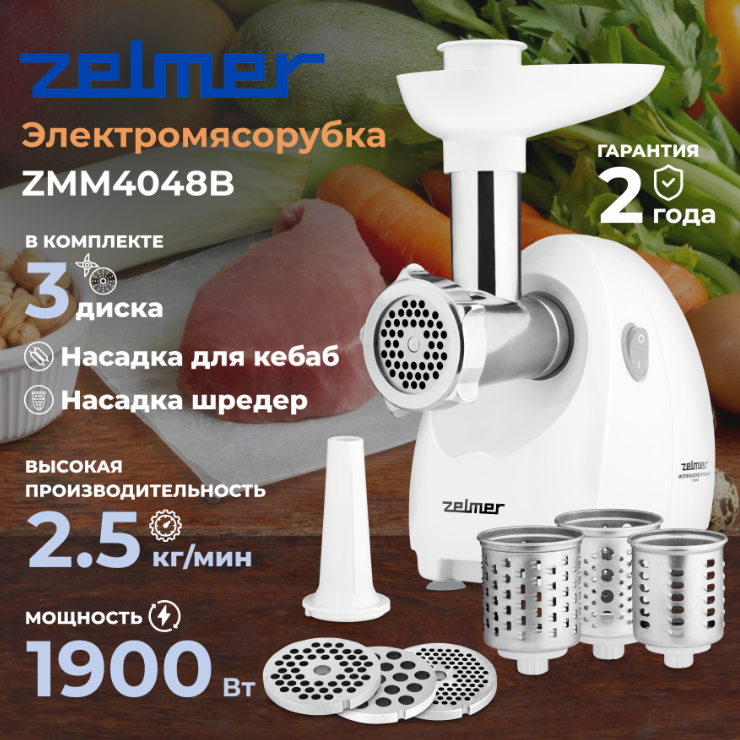 Мясорубка ZMM4048B WHITE ZELMER