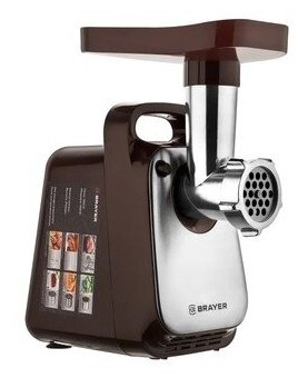 Мясорубка BRAYER BR1601, 1300 Вт, производительность 1,5 кг/мин, металлический шнек, реверс, пластик, коричневая/серебро