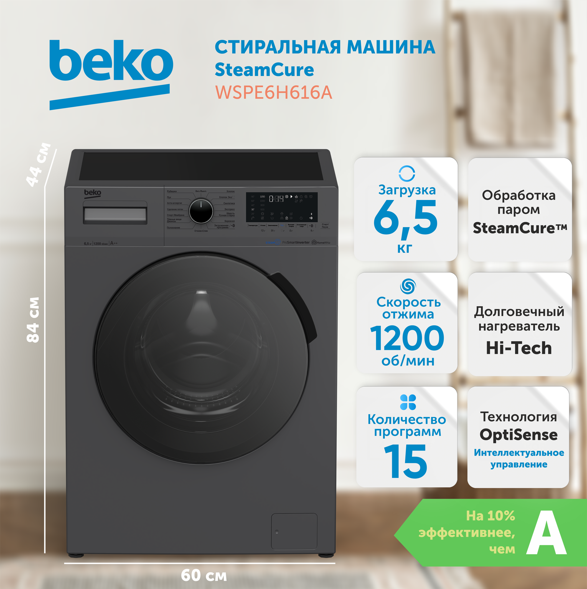 Стиральная машина BEKO WSPE 6H616W, (А+++) белый/черный